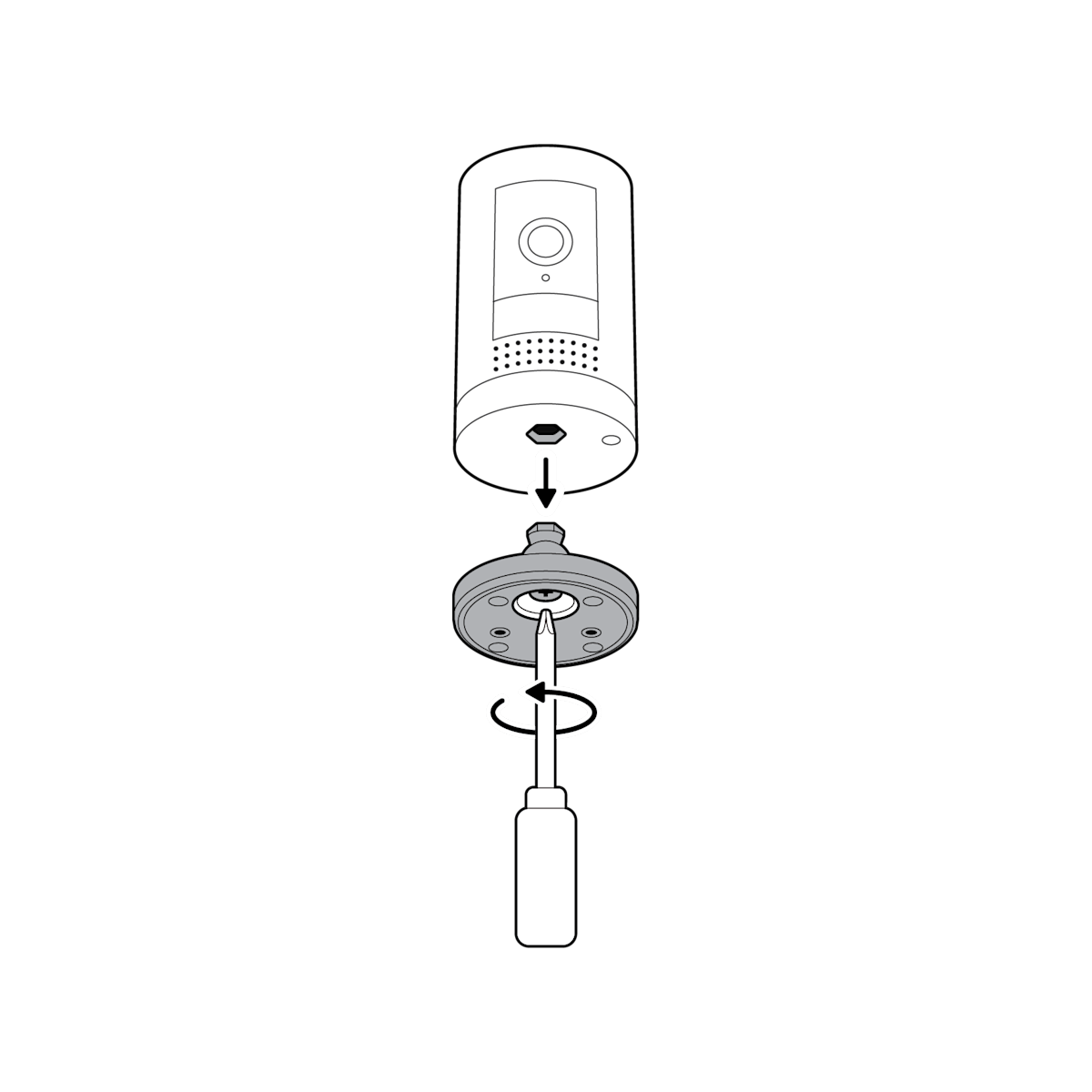 6. Fixez votre caméra dans la fente ovale supérieure à l’aide de la vis fournie.